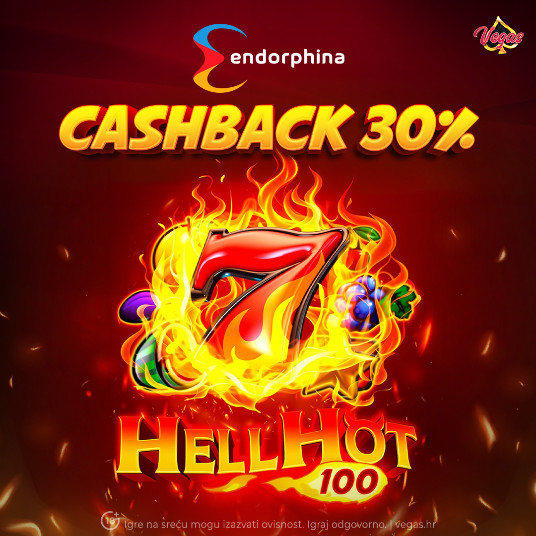 - Cashback iznosi 30% od Vašeg neto gubitka (ulog – dobitak) na igri tjedna HELL HOT 100, Endorphina providera.
