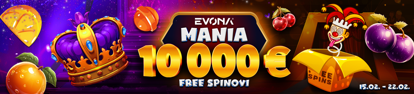 EVONA MANIA FREE SPINOVI – NAGRADNI FOND 10 000€